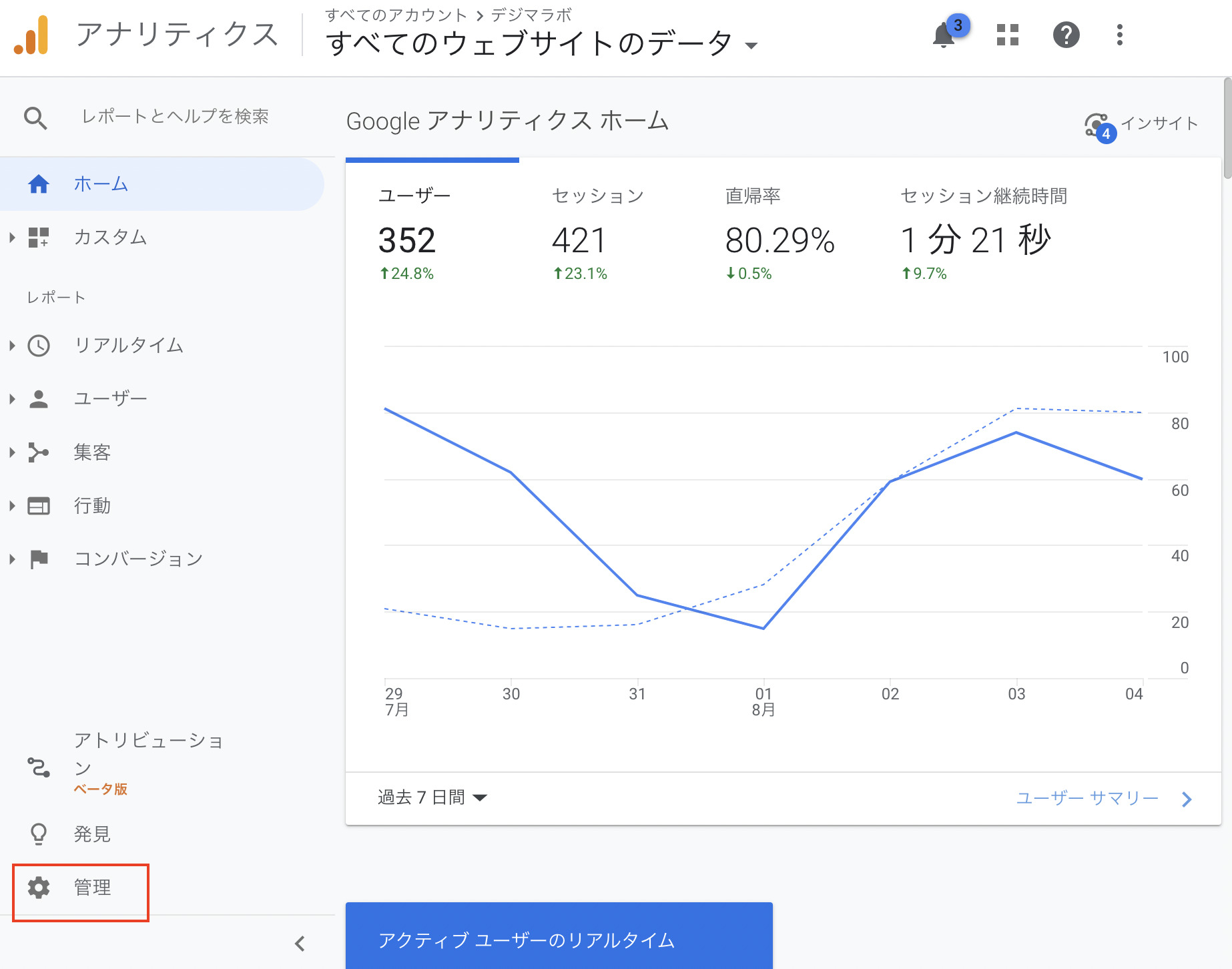 GA4の管理画面
