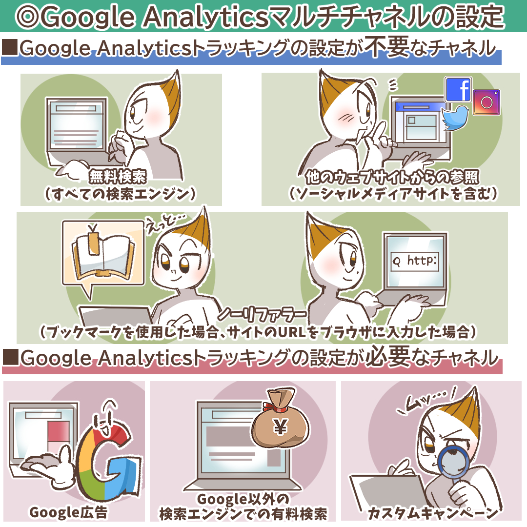 GA4が自動で認識するチャネルと設定が必要なチャネル