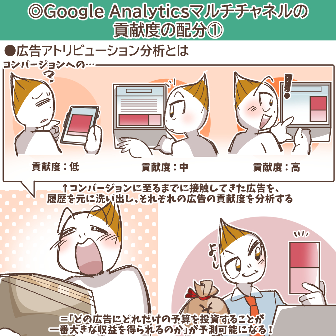 マルチチャネル分析の中核をなすのが「広告アトリビューション分析」です。これは、単にレポートの数値を読むだけでなく、その背景にある「貢献度の割り当てルール(アトリビューションモデル)」を深く理解し、自社のビジネスに最適なモデルを選択・活用していく思考プロセスそのものを指します。