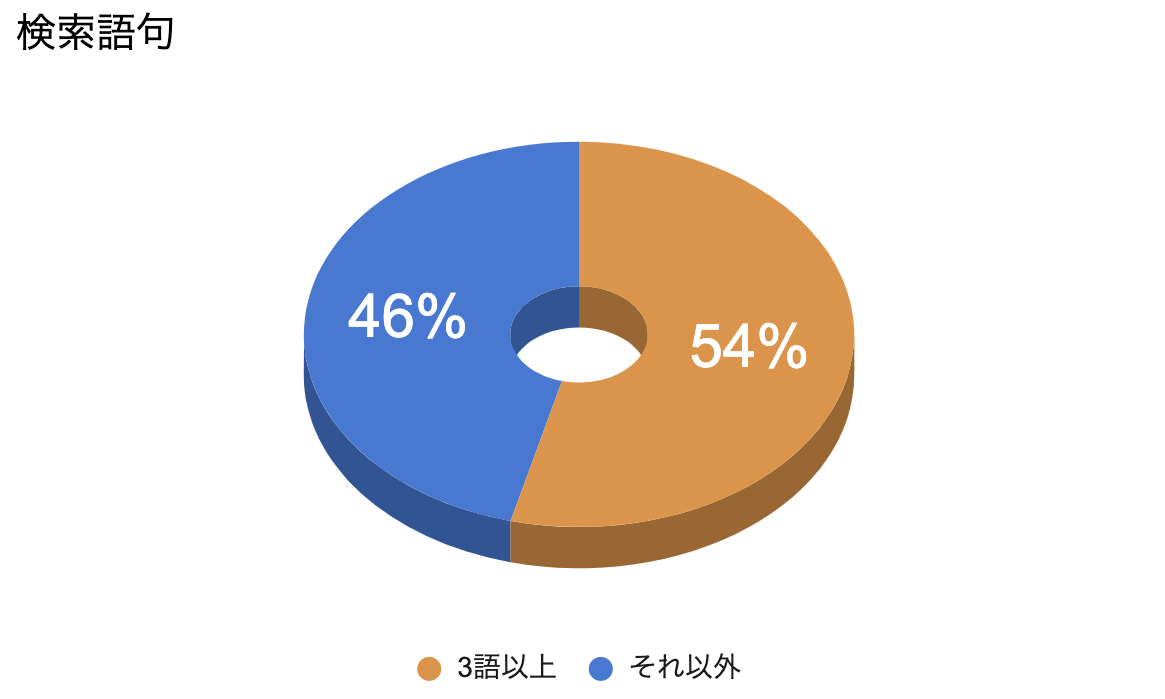 検索語句で使われる単語の数が三語以上のものが半分以上になっており、手動で各検索語句のパターンに対応するのはとても大変でかなり時間がかかります。