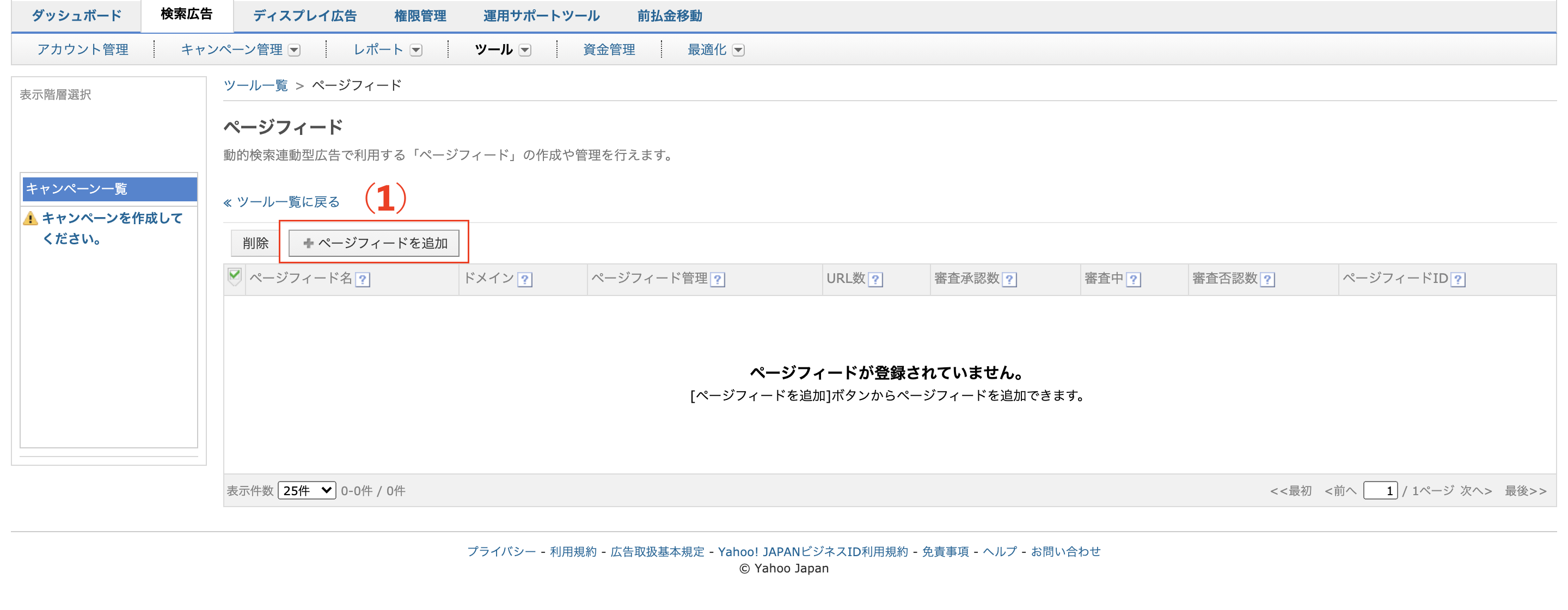 Yahoo!動的検索広告(DAS)の始め方はGoogleと異なり、フィードの登録が必要になります。