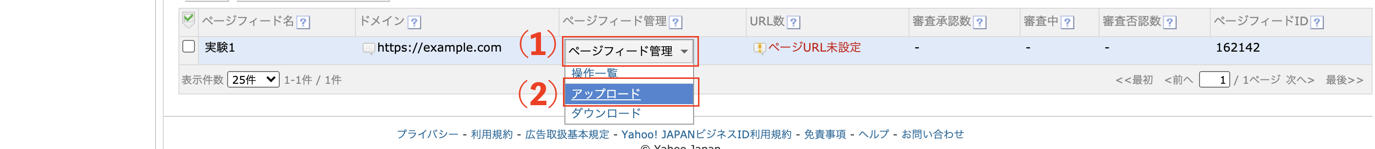 1. 異なるドメインのページURLを1つのページフィードには含められません。ドメインごとにページフィードの作成が必要です。