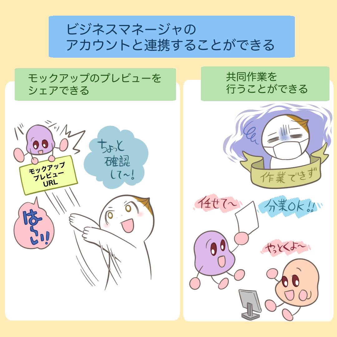 Facebookのアカウントがなくても、モックアップの作成・共有・入稿が可能になります。