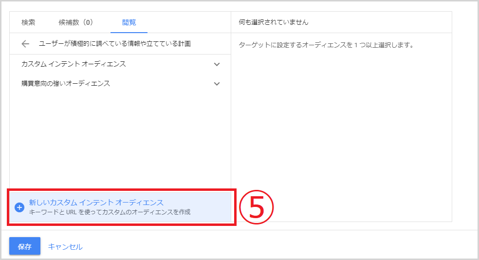 ⑤ 下部の「+新しいカスタム インテント オーディエンス(CIO)」をクリック