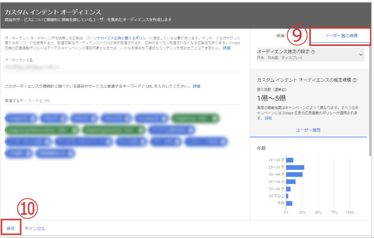 カスタム インテント オーディエンスの設定画面が表示されます。