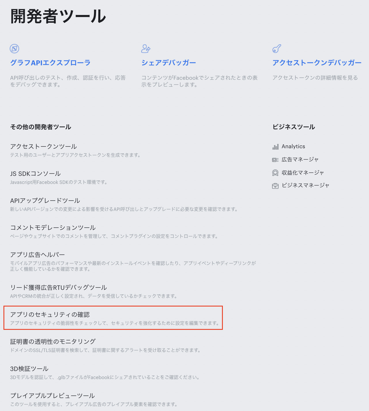 • ビジネスマネージャーアカウント