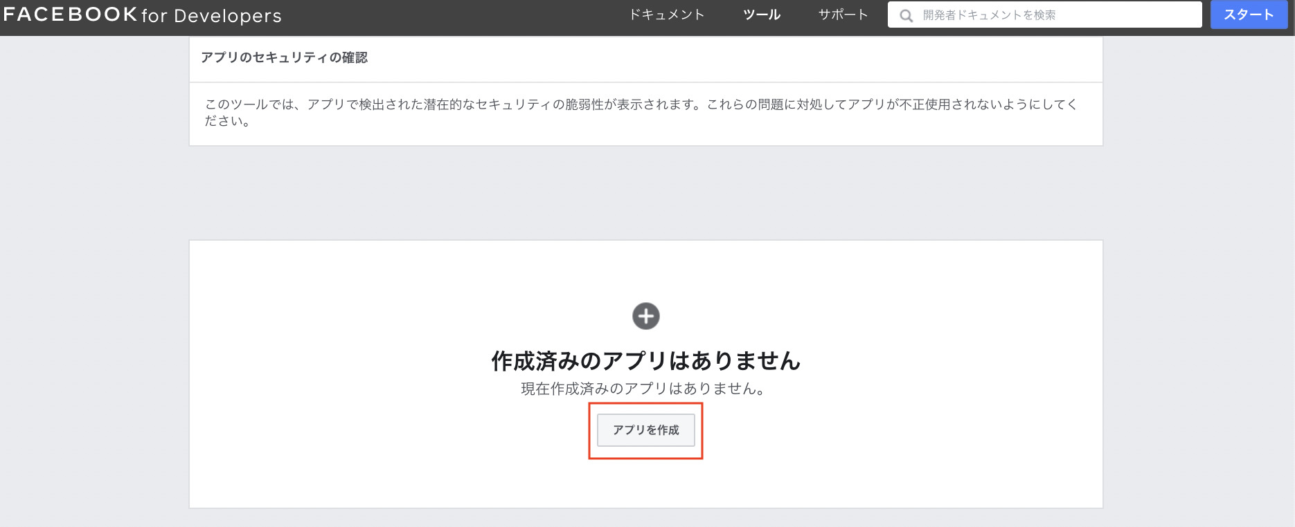 新しいアプリをまだ作成していない場合は開発者ツールを開き作成します。