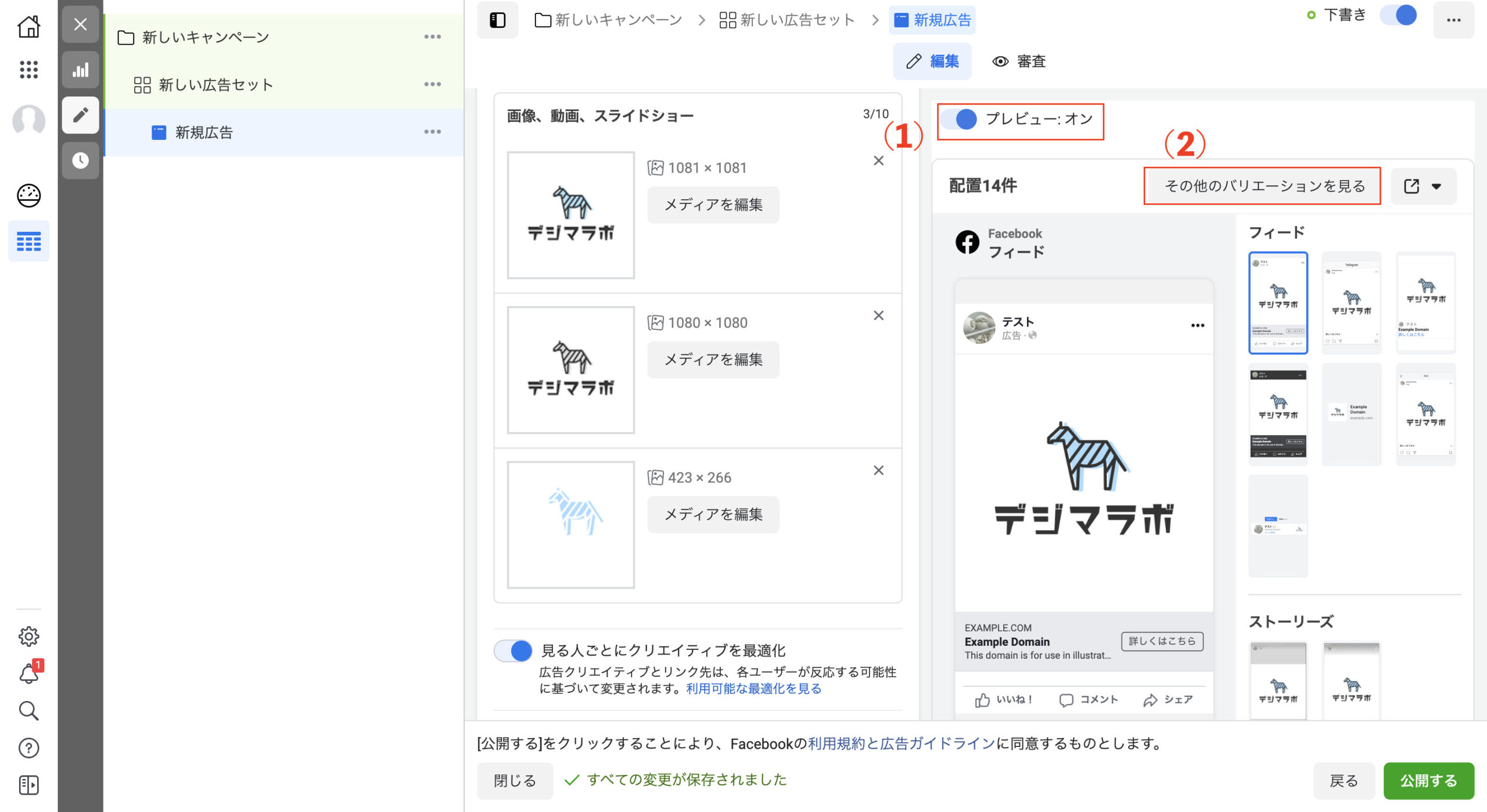 引用:クイック作成でダイナミッククリエイティブ広告を作成する-Facebook Businessヘルプセンター