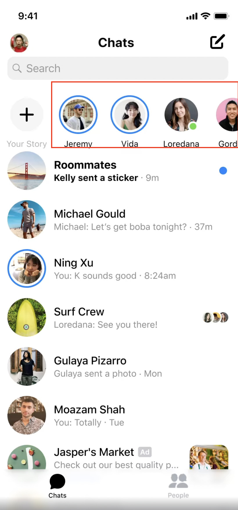 Messengerストーリーズ広告は、魅力的で手軽に視聴できるフルスクリーンのモバイル広告です。