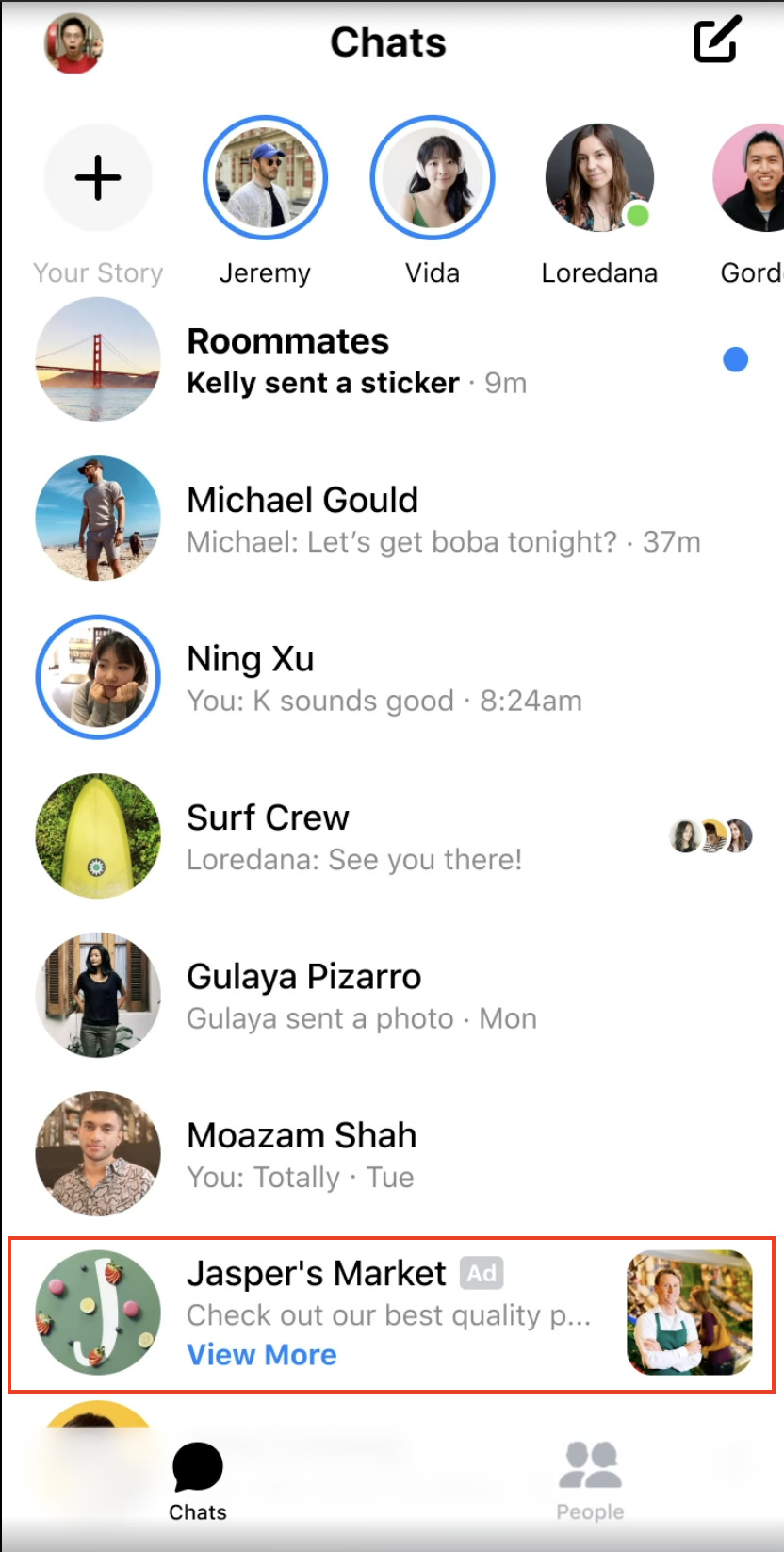 Messenger受信箱に広告を下記の画像のように配信することができます。
