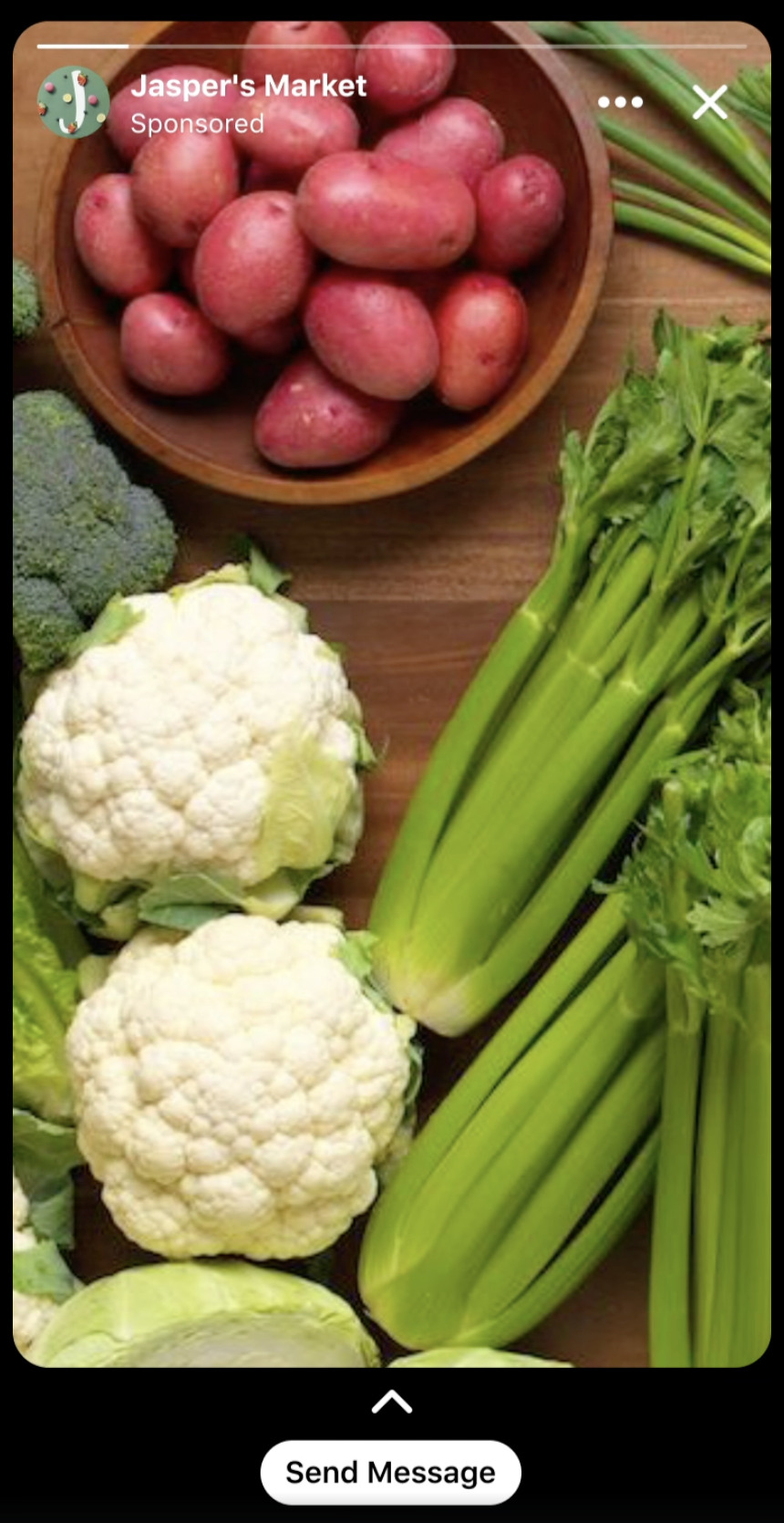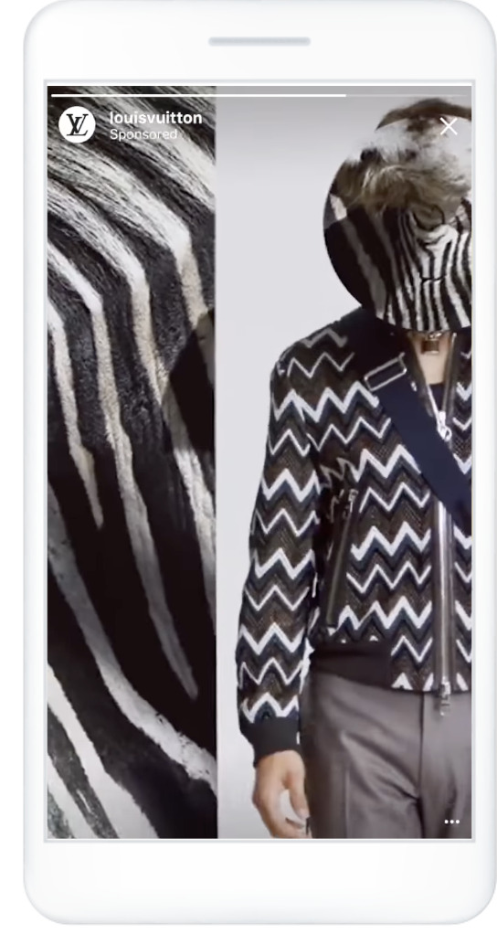 Instagramストーリーズの広告は縦型のフルスクリーン広告で、一般のユーザーが投稿したストーリーズの間に閲覧者に表示されます。Instagramストーリーズでカルーセルフォーマットを使用すると、1つの広告で最大10点の画像や動画を表示し、それぞれに別のリンクを付けられます。