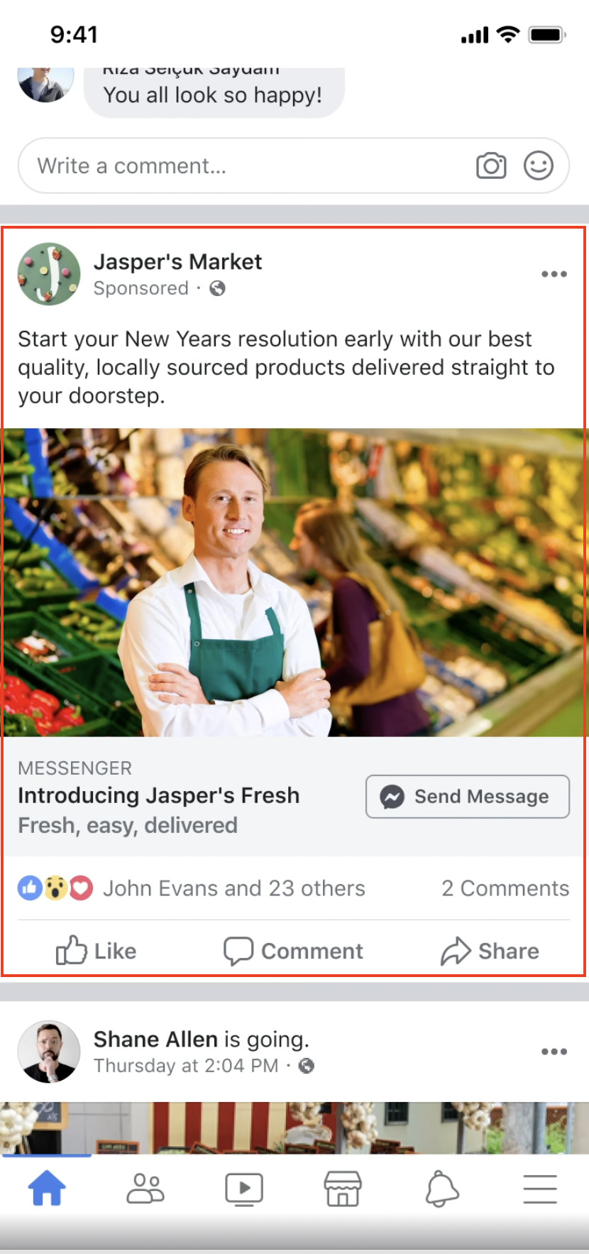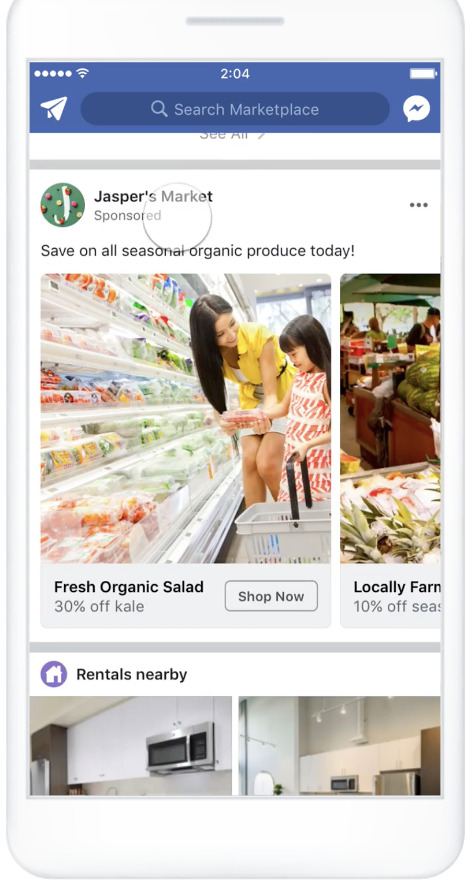 Facebook Marketplaceの配置を利用すれば、商品の購入に関心を持っている利用者が集まるアクティブなコミュニティにリーチできます。