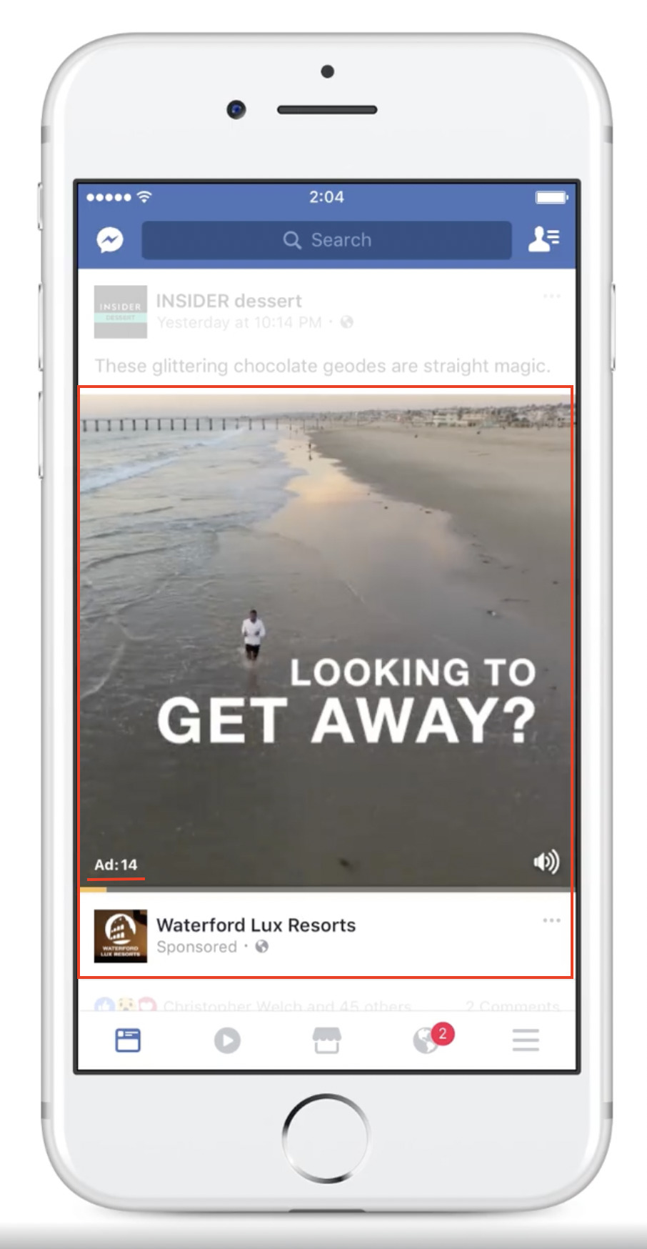 Audience Networkではさまざまな掲載パートナーのアプリやウェブサイト上で、プリロールまたはミッドロールのインストリーム動画広告を配信することが可能です。