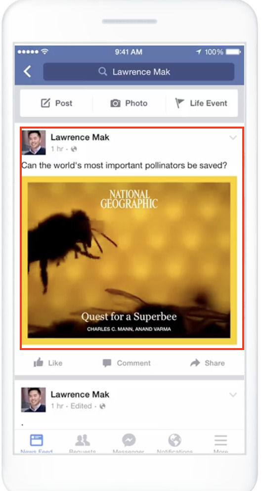 Facebookニュースフィードで動画フォーマットを使用して、商品やサービス、ブランドを紹介できます