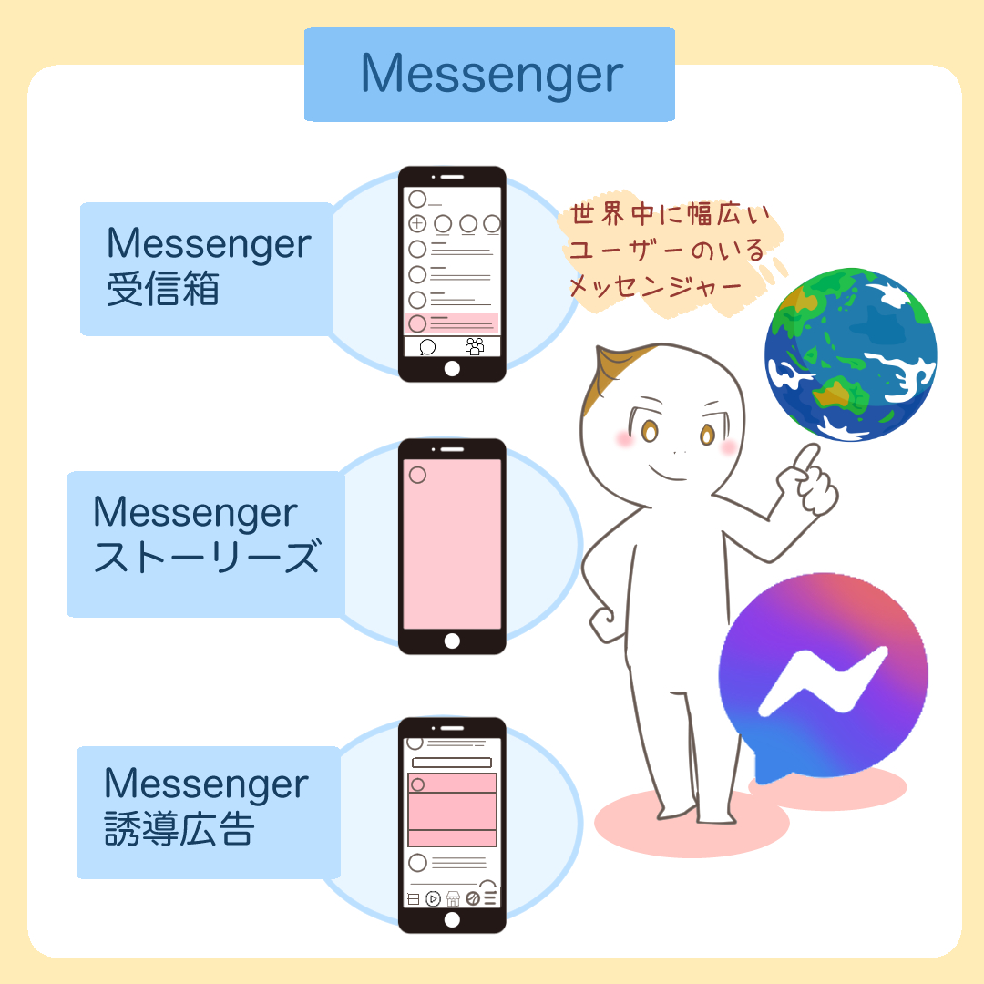 世界中で利用されているMessengerに広告を掲載すれば、とても簡単に全世界へリーチできます。