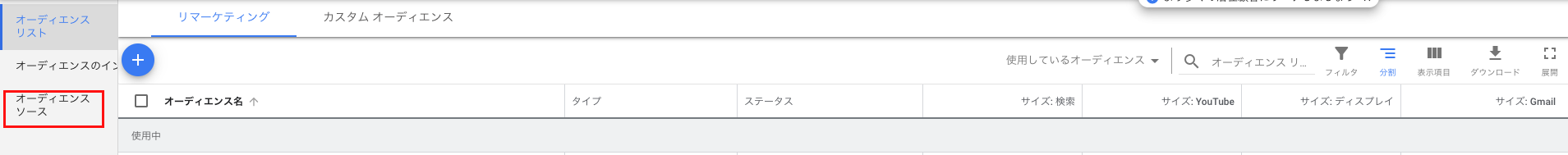 オーディエンスのソースをクリックします