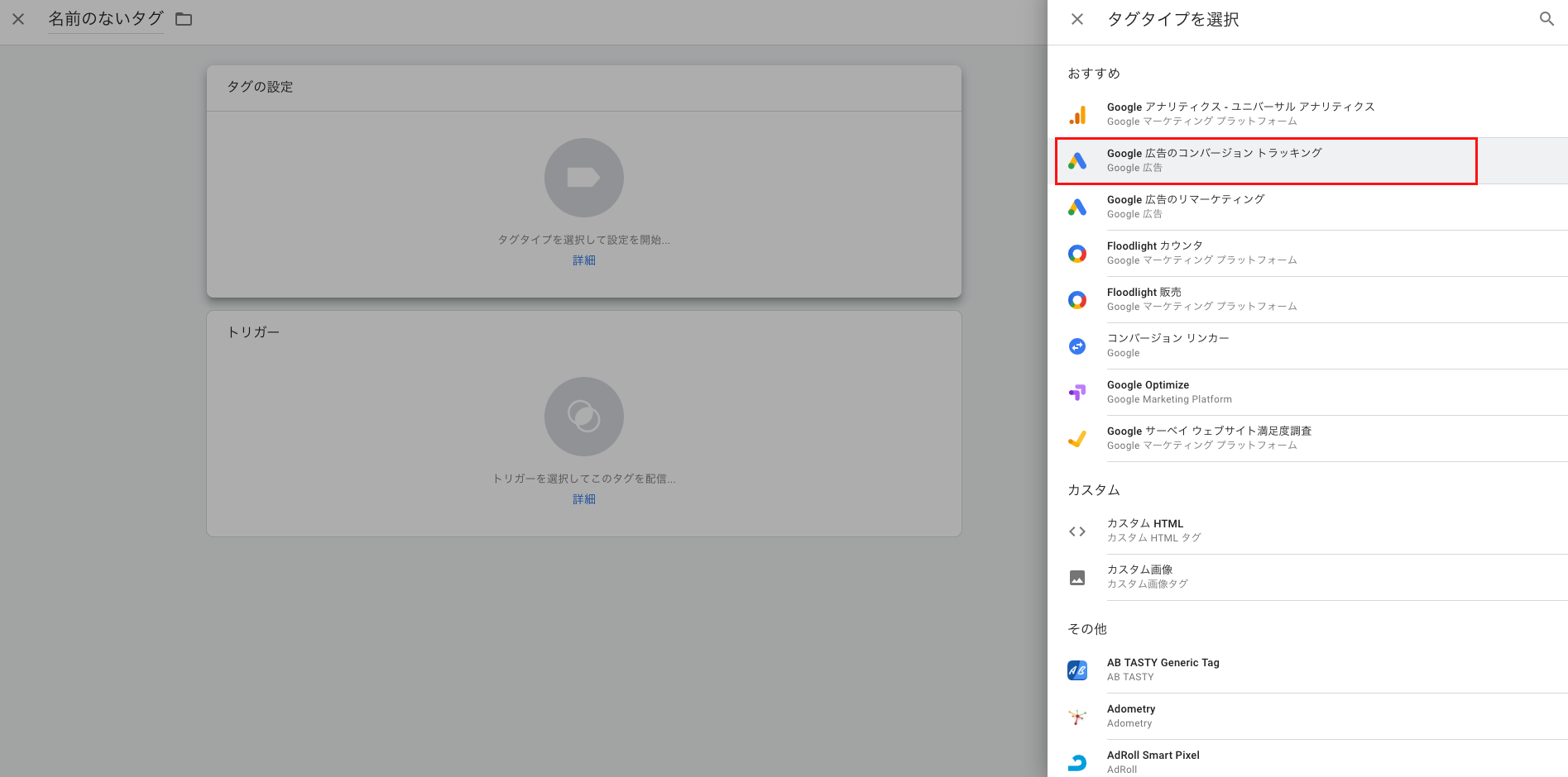 Googleタグマネージャーで作成するコンバージョンタグの名称を「Google広告のマイクロコンバージョンタグ」に設定してください。