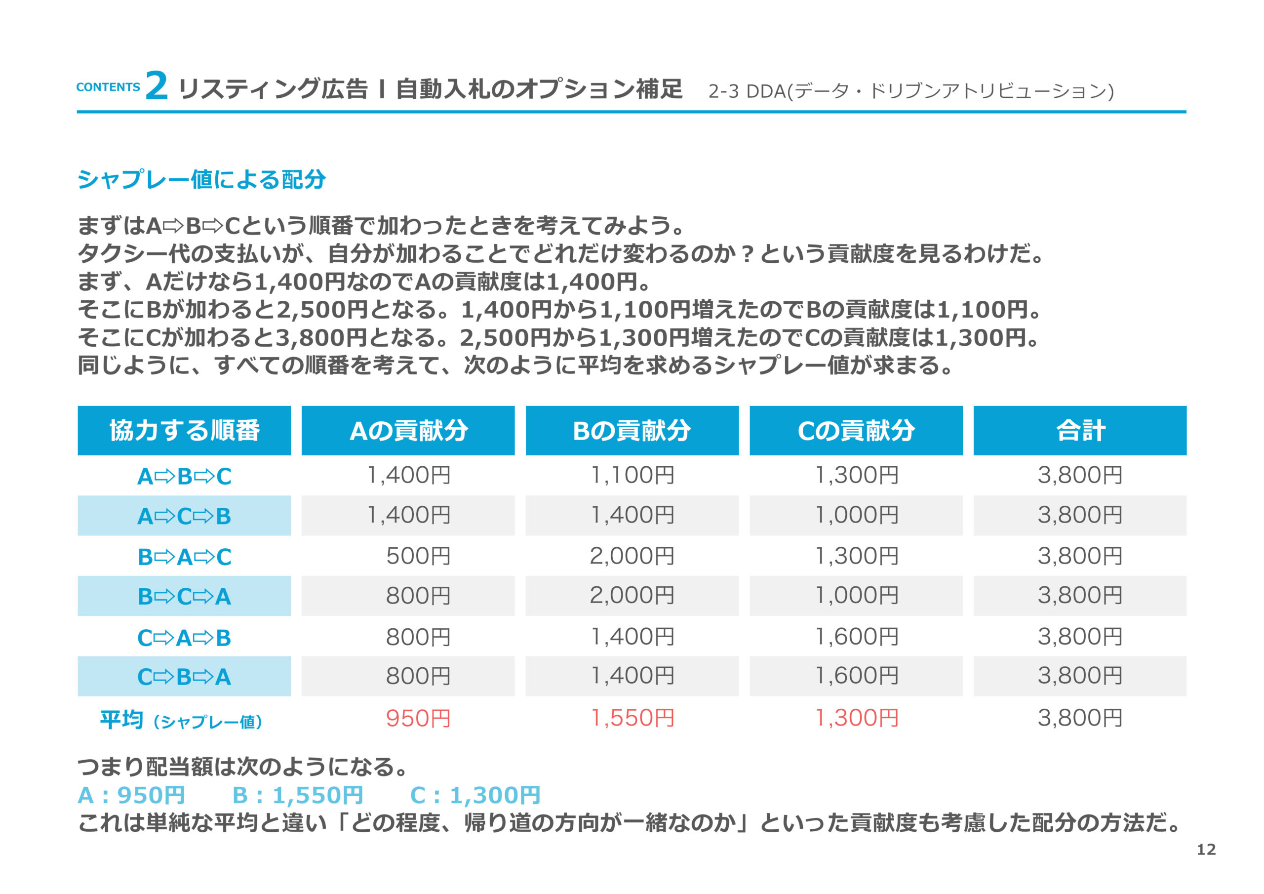 ここで出てきたAさん、Bさん、Cさんをキーワードに置き換えると、DDAが各キーワードにどのように貢献度を割り当てているかイメージが付きやすいのではないでしょうか。