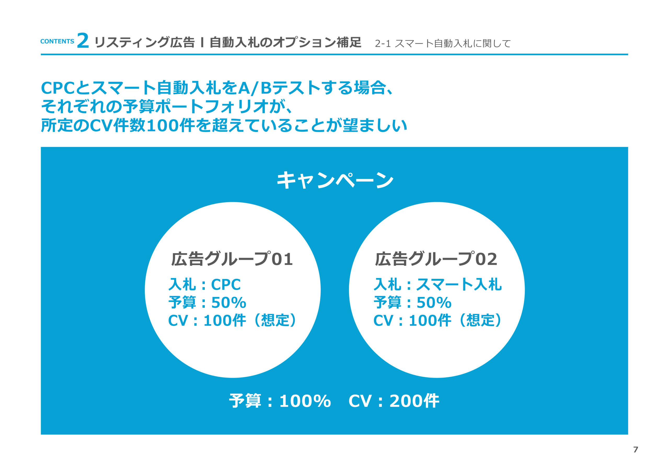 この場合、テスト用のスマート自動入札のキャンペーンが、上記のCV件数をクリアしていることが条件です。