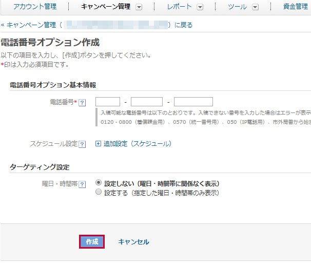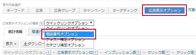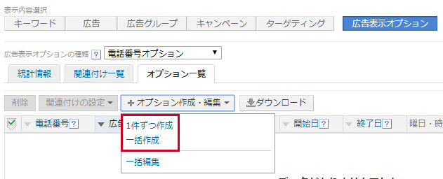 今回は電話番号オプションを例に広告表示オプションの設定方法をご説明いたします。