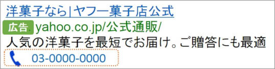 電話番号を表示できます。スマートフォンで広告を表示した場合、電話番号をタップして電話をかけられるため、電話による申し込みや問い合わせの促進などに効果的です。