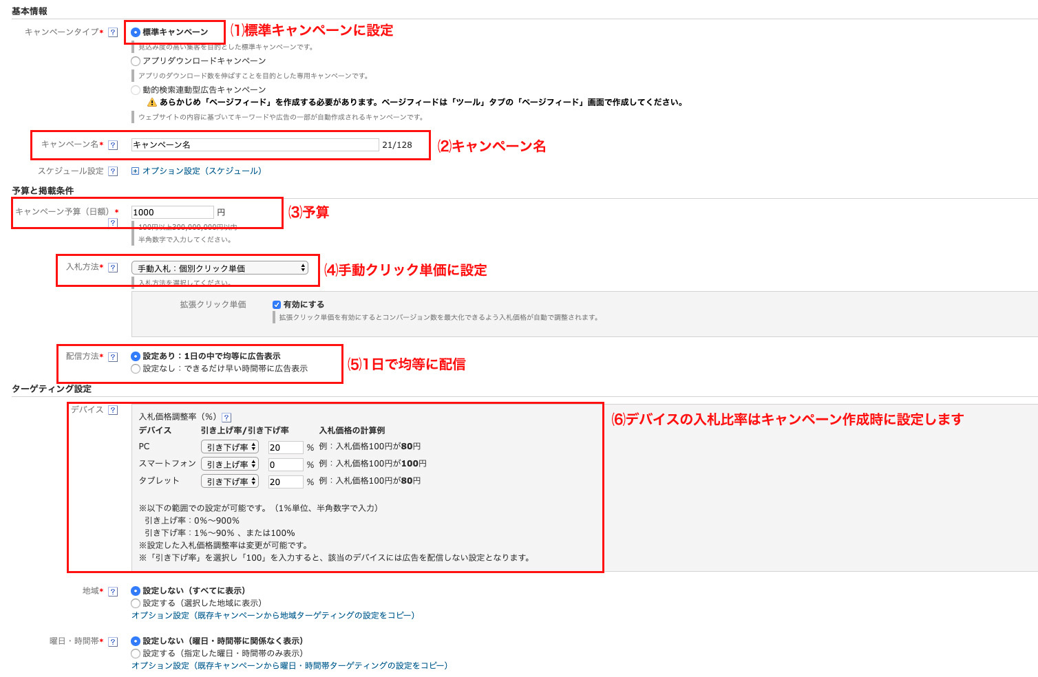 キャンペーンを作成する(地域、曜日のターゲティングが可能)