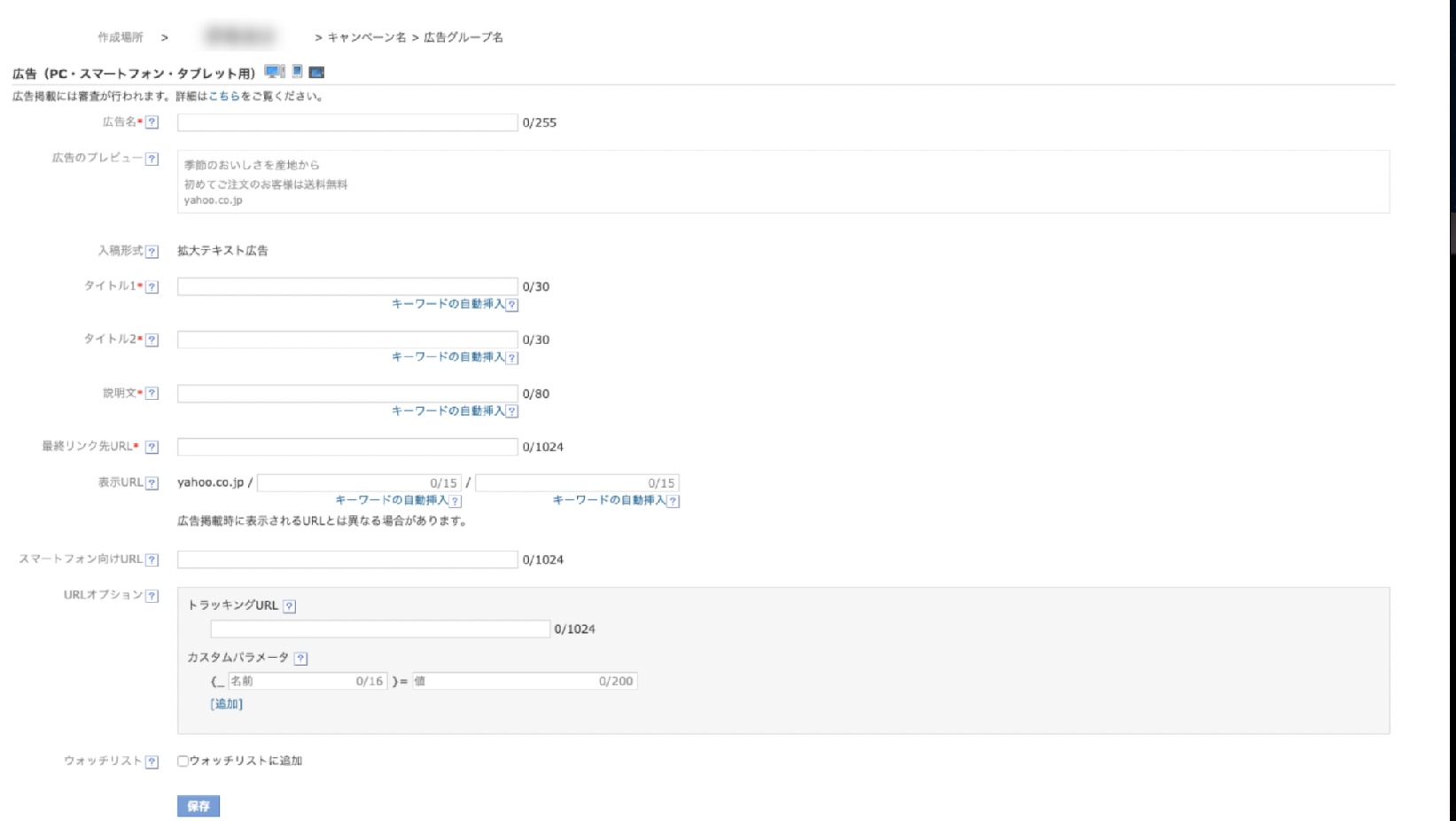今回はYahoo!拡大テキスト広告を例にして設定方法を説明していきます。