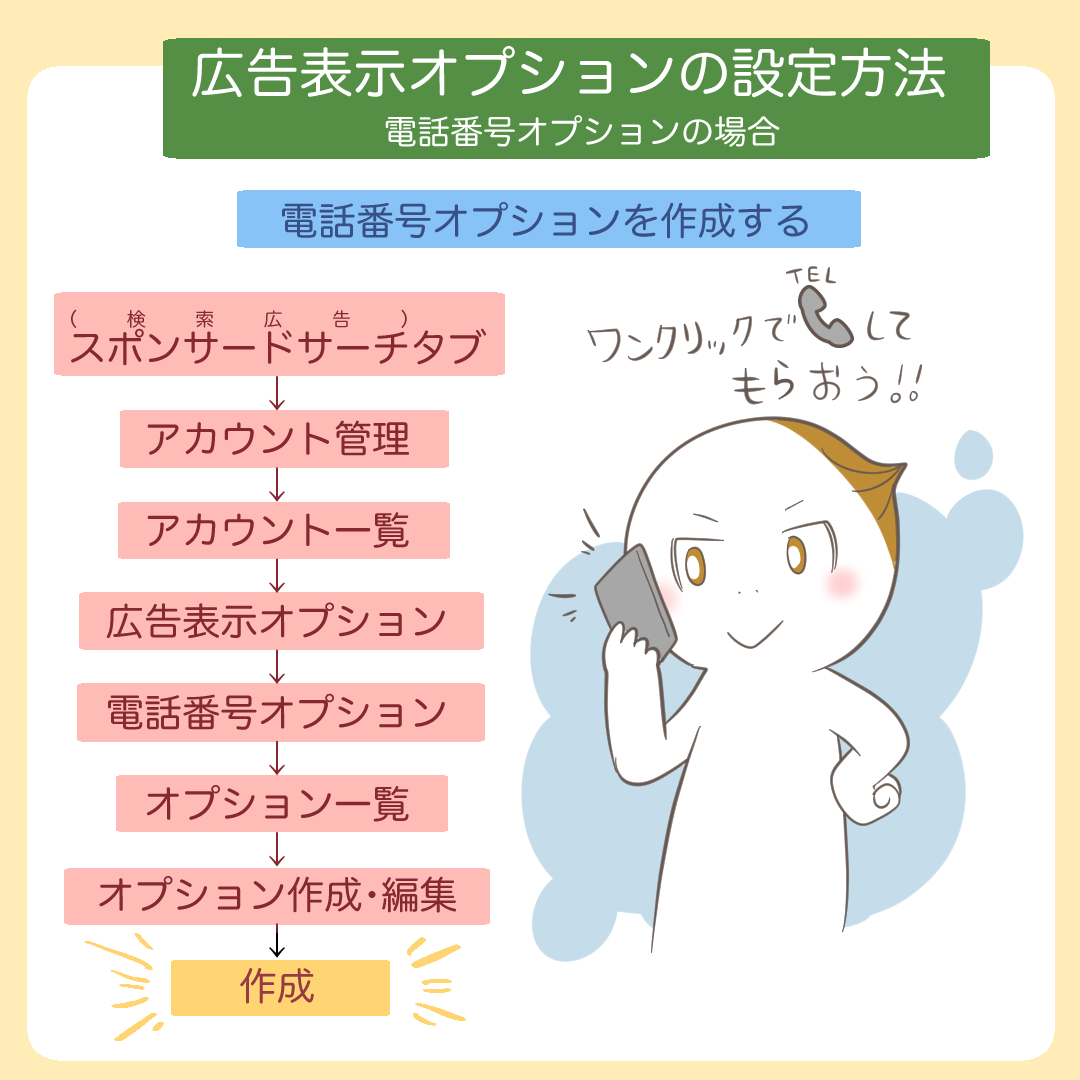 今回は電話番号オプションを例に広告表示オプションの設定方法をご説明いたします。