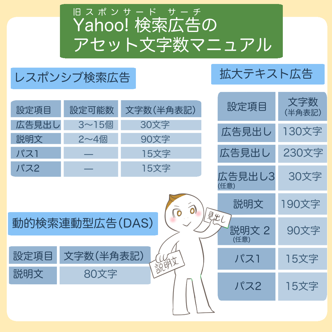 Yahoo! 検索広告(旧:スポンサード サーチ)のアセット文字数マニュアル