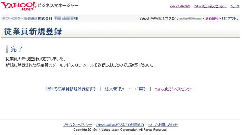 法人管理権限保持者は、Yahoo!ビジネスマネージャーに従業員を新規登録できます。