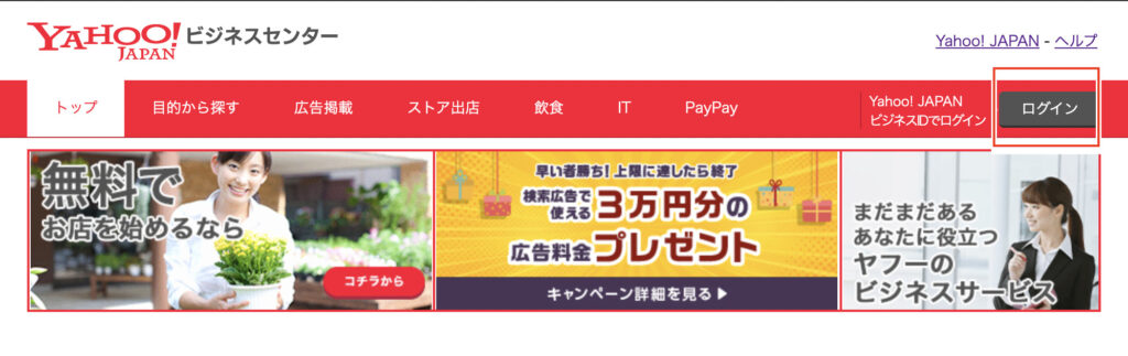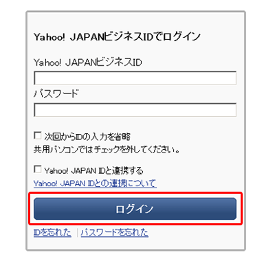 | ビジネスIDのログインページ | Yahoo! JAPAN IDのログインページ |