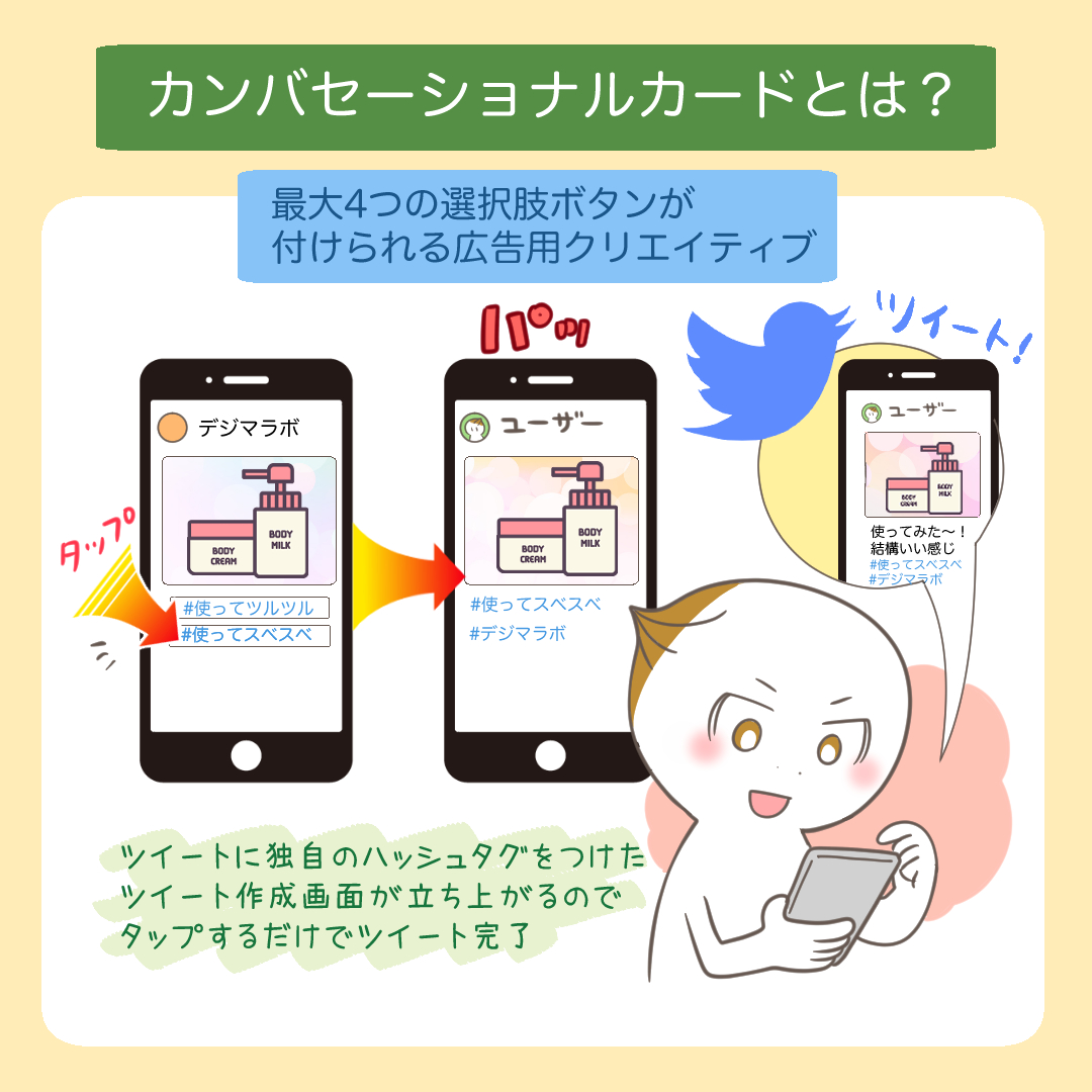 カンバセーションボタンは、このプロセスを劇的に簡略化します。ユーザーが行うべきことは、提示された選択肢から一つを選んでボタンをタップするだけです。これにより、ハッシュタグが自動的に入力されたツイート作成画面に遷移するため、ハッシュタグの入力ミスや入力忘れといった物理的な手間が完全になくなります。