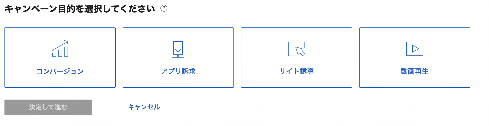 各目的の内容や選択の目安は、「目的別のキャンペーン作成について」を参考にしてください。