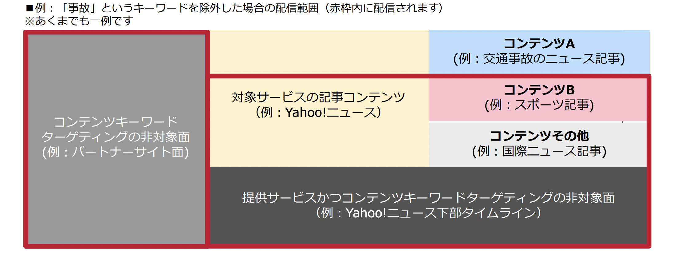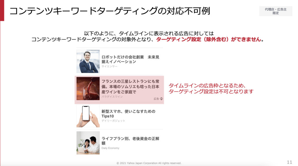 YDAコンテンツキーワードターゲティングの配信面/非配信面
