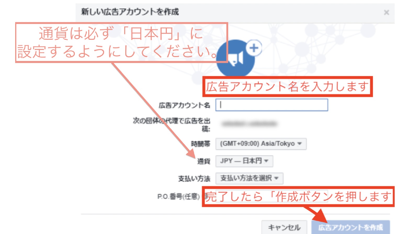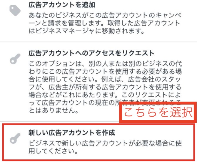 2.ビジネスマネージャー内で広告アカウントを作成する