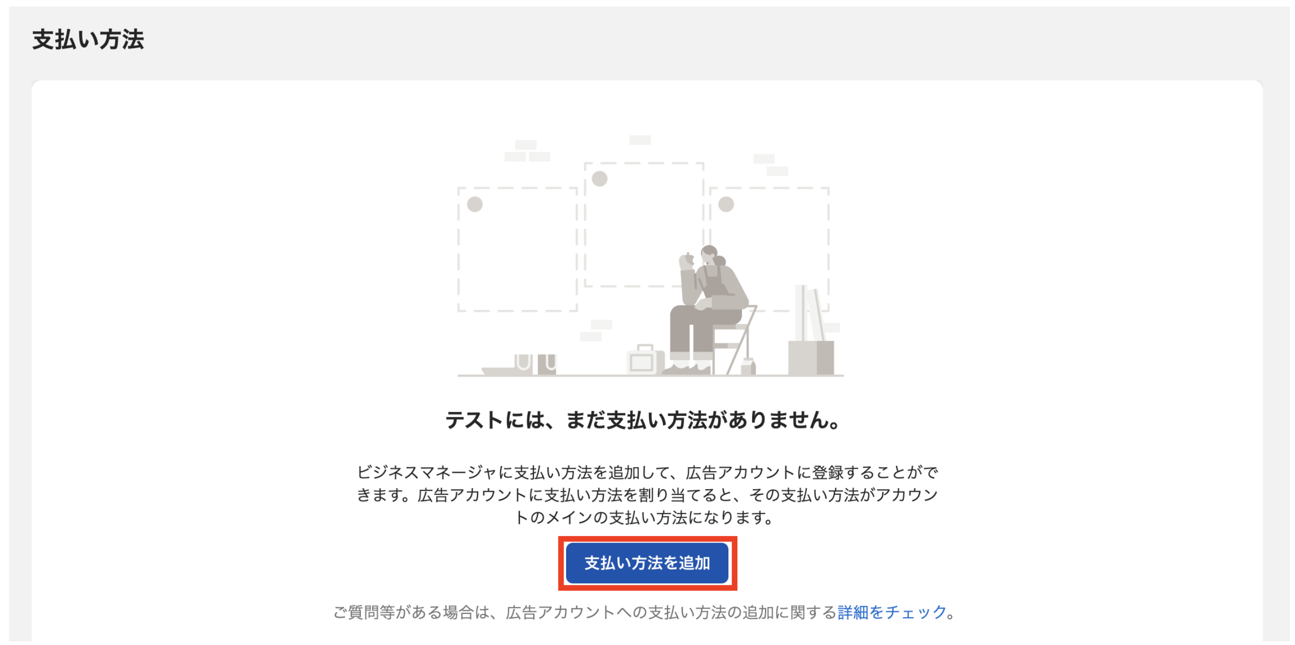 - 画面中央の「支払い方法を追加」ボタンをクリックします。
