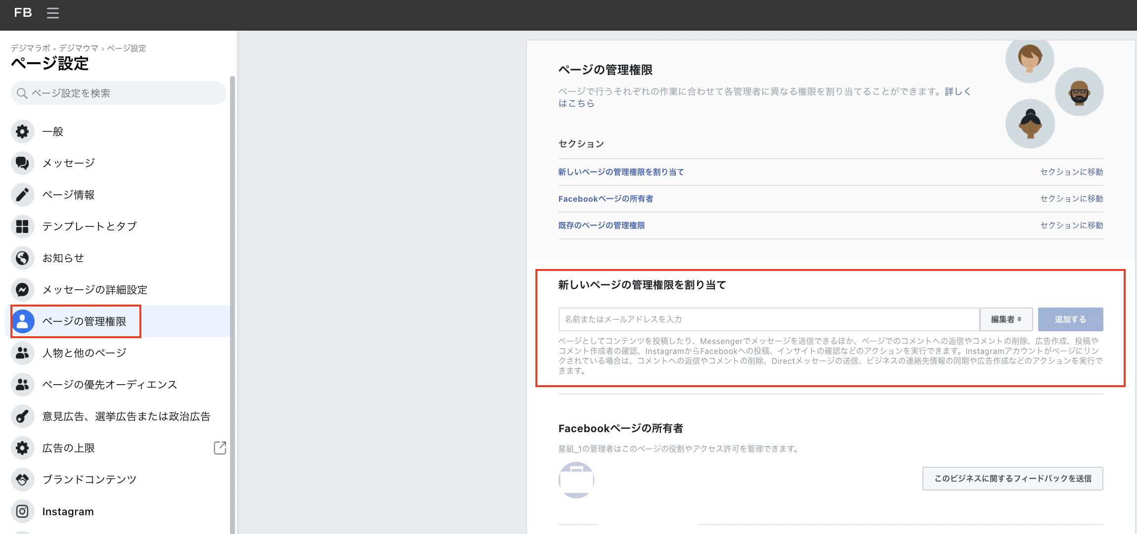 - 広告主: 広告の作成と、インサイトの閲覧のみが可能です。ページの投稿や編集はできません。広告運用のみを外部に委託する場合などに使用します。