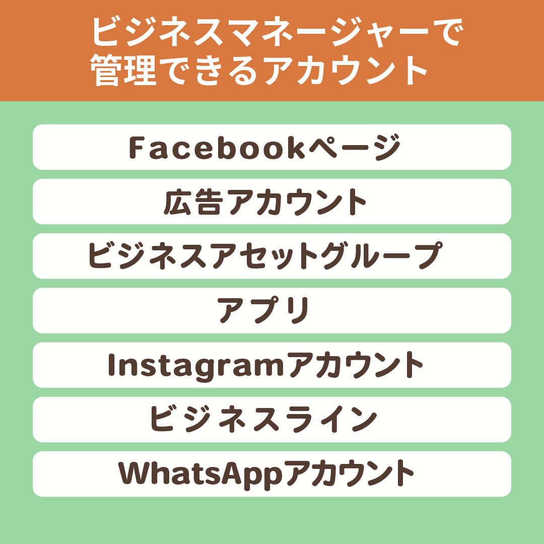 Meta Business Suite(旧Facebookビジネスマネージャ)で管理できるアカウントと主要なビジネスアセット
