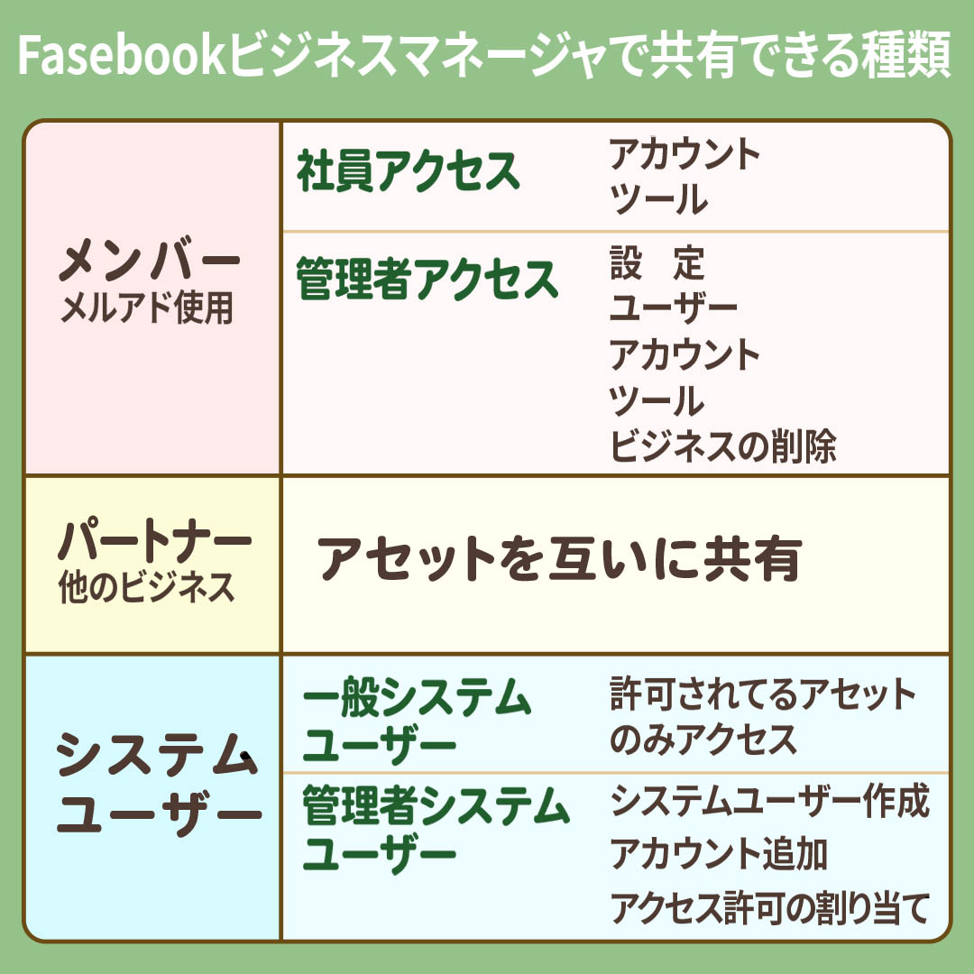 Meta Business Suite(旧Facebookビジネスマネージャ)で共有できる権限の詳細