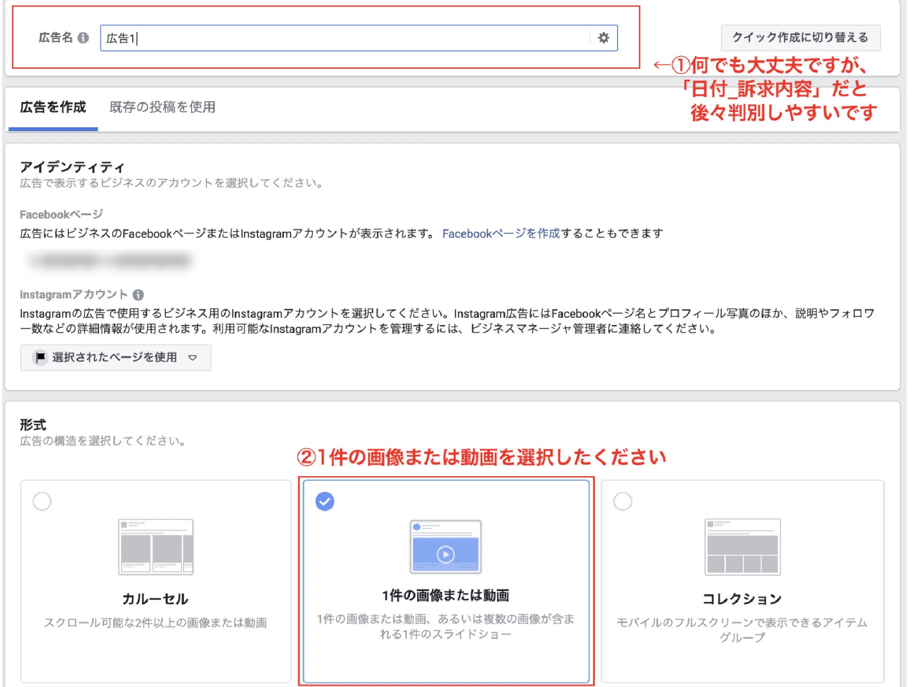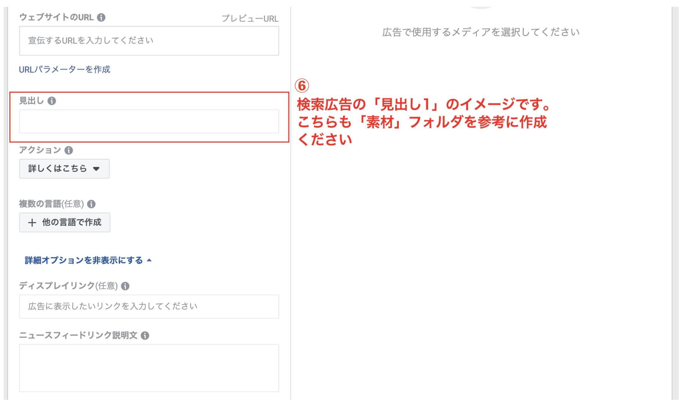 広告の作成で設定する項目は