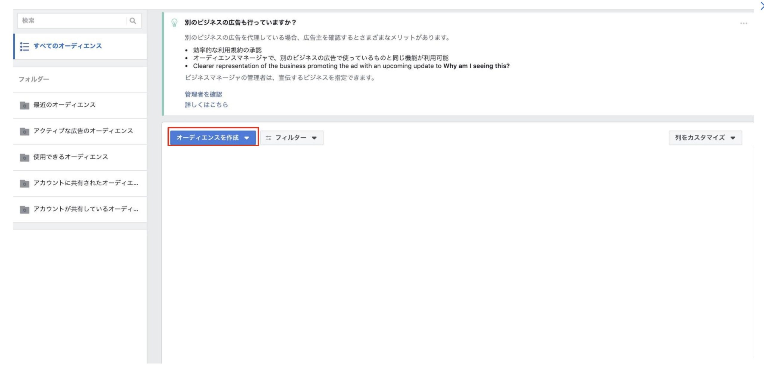 オーディエンスの作成をクリックします。