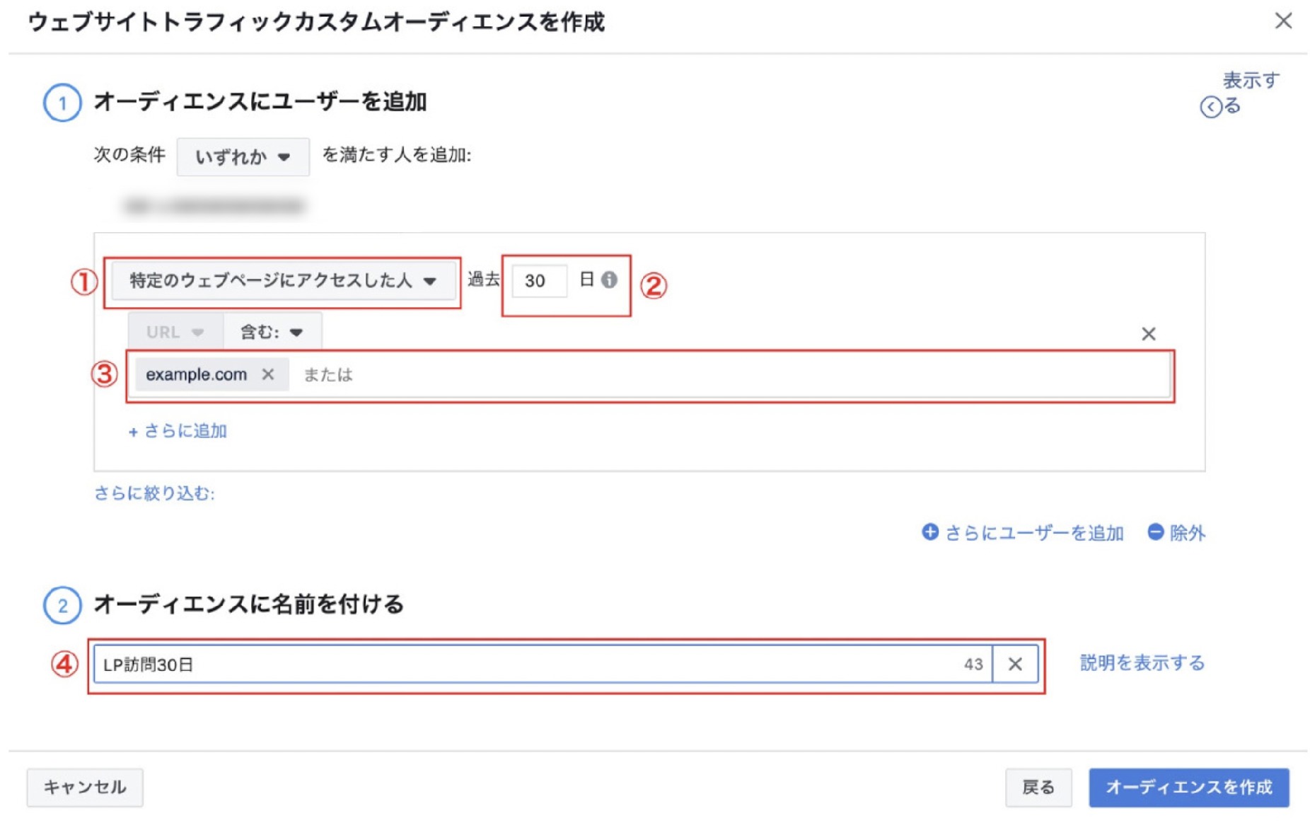 ④オーディエンス名を設定してください。