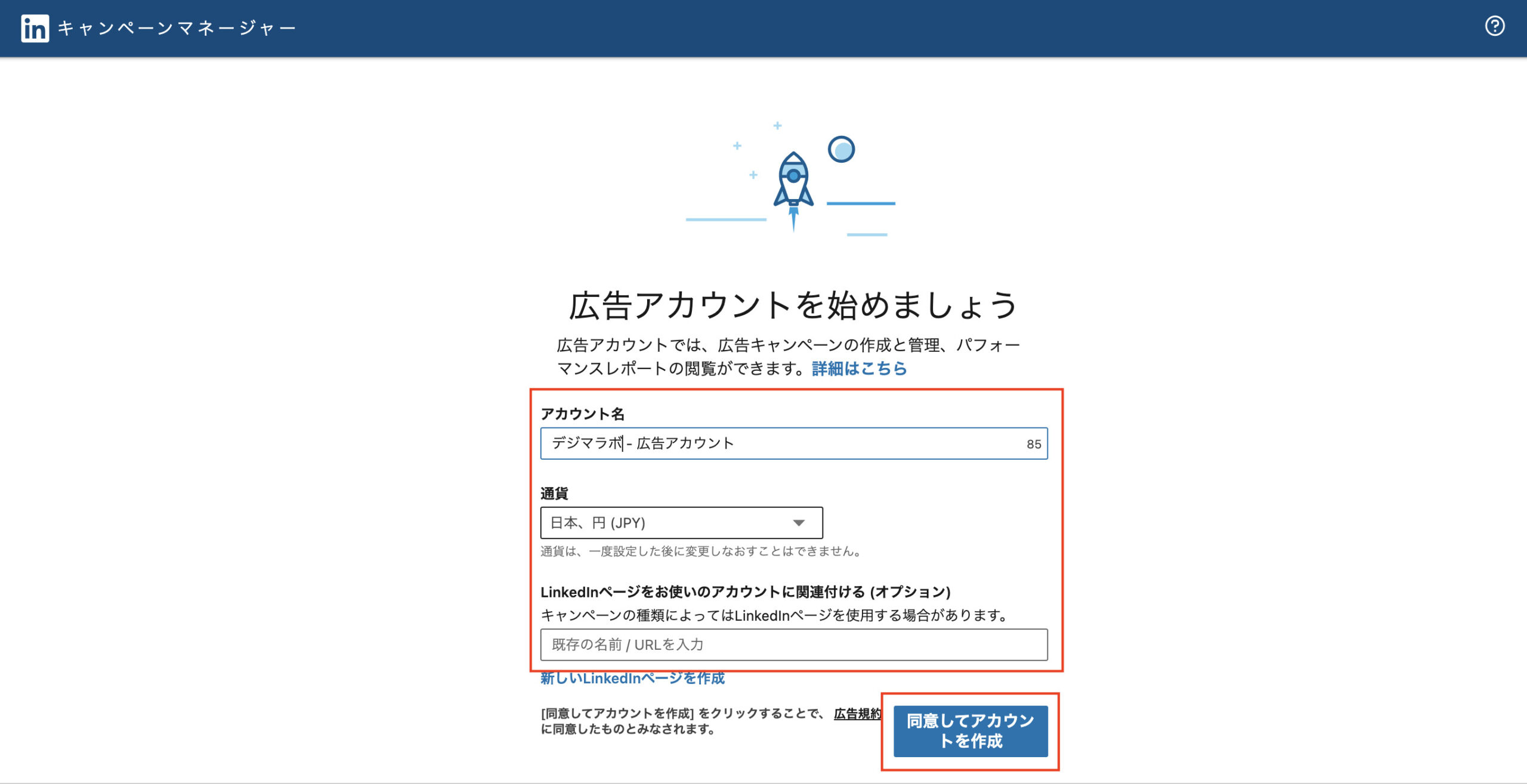 [アカウントを作成する]をクリックし、アカウント名を記入、通貨を選択し保存します。