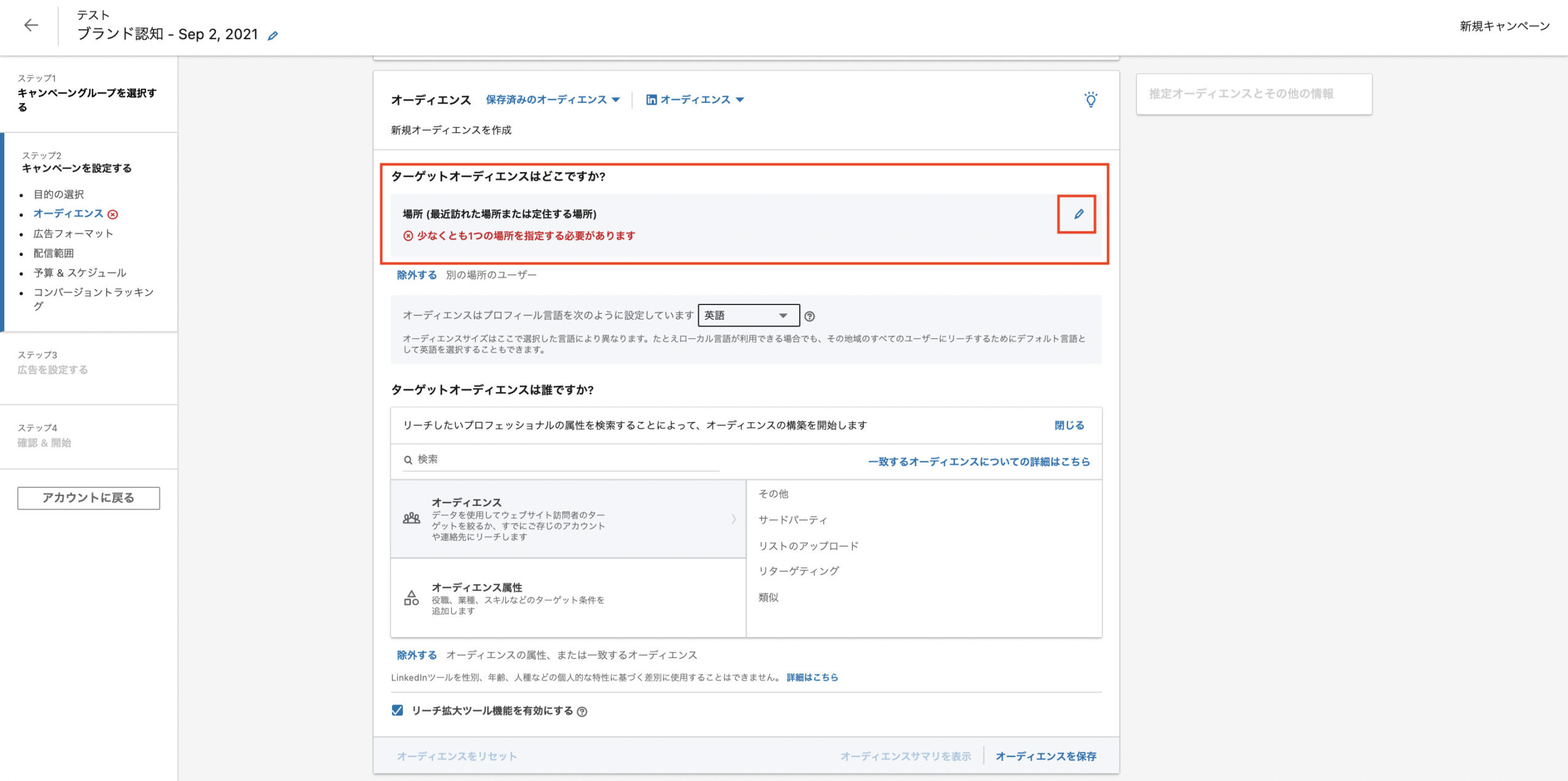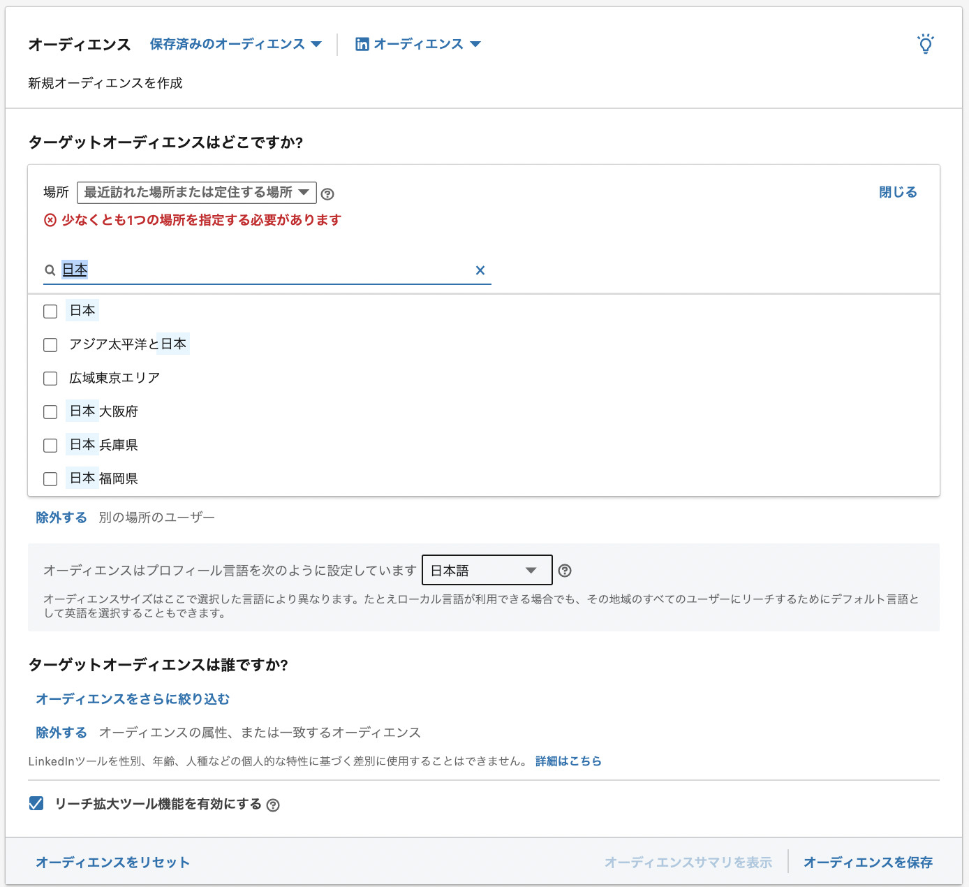 検索欄が出現するので、ターゲットにするエリアを選択してください。