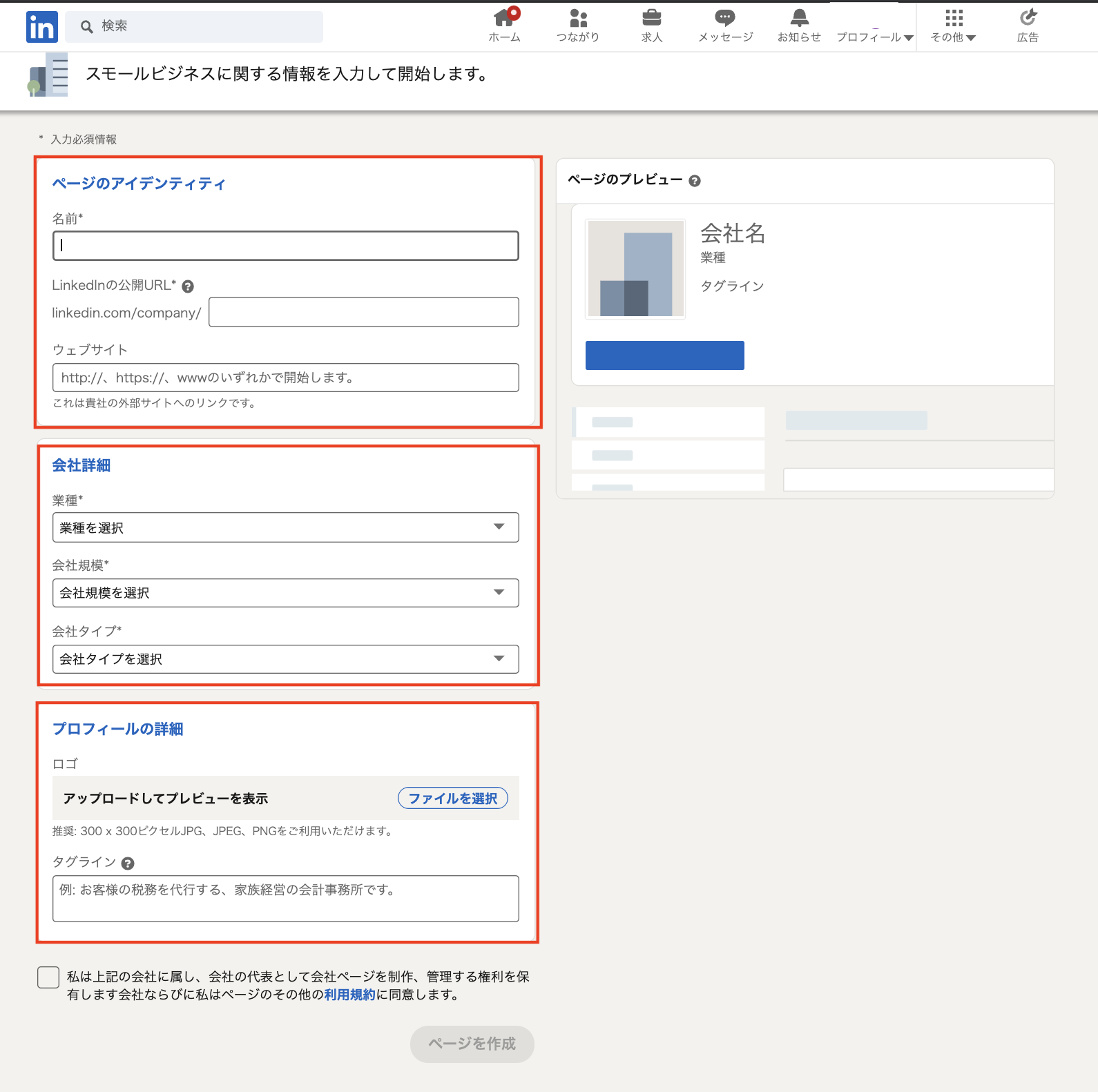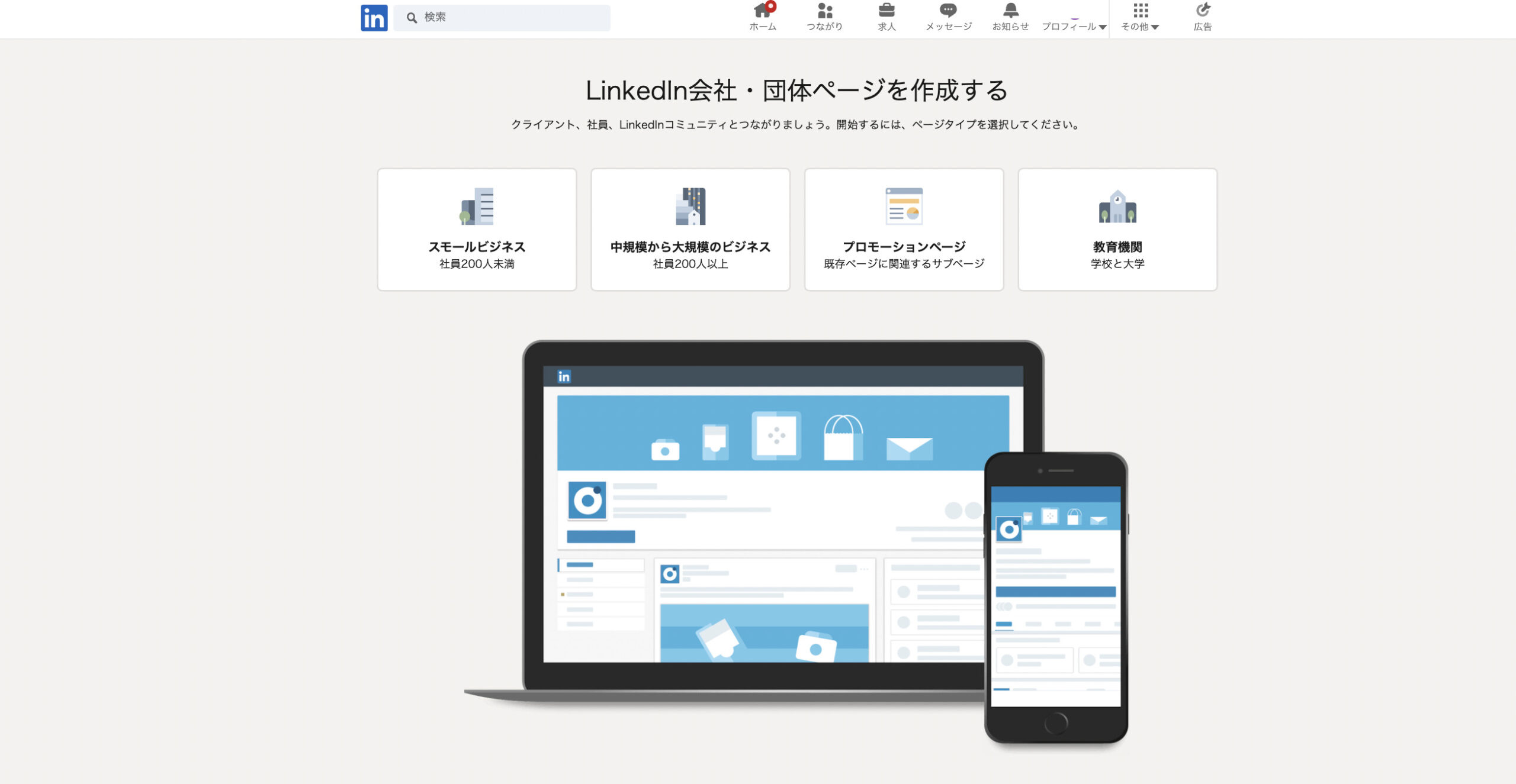 LinkedInの会社ページ、プロモーションページを追加してください。