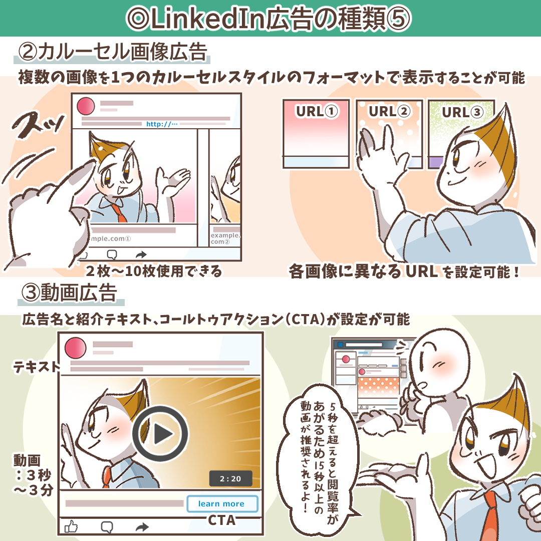 LinkedIn広告は、BtoBマーケティングおよび採用活動における「獲得」という目的を達成するために、多種多様な広告フォーマットを提供しています。それぞれのフォーマットは異なる特性と強みを持ち、キャンペーンの目的やターゲットオーディエンス、そして伝えたいメッセージに応じて戦略的に使い分けることが成功の鍵となります。広告の種類は大きく4つのカテゴリーに分類されます。それぞれのカテゴリーがどのような役割を果たし、具体的な獲得活動にどう貢献するのか、その詳細を見ていきましょう。