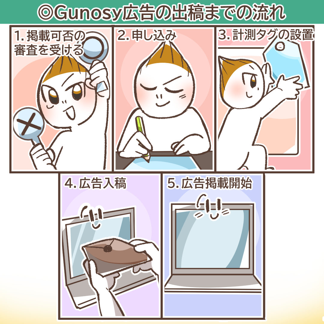 ここまでGunosy広告(グノシー広告)について解説してきましたが、ここからは具体的にどのように出稿するのか、広告掲載までの流れについて解説していきます。
