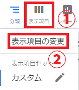 以下の番号の順番で表示項目の変更画面を呼び出し