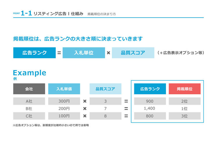 広告ランクは主に「入札単価×品質スコア」の計算式で求められます。