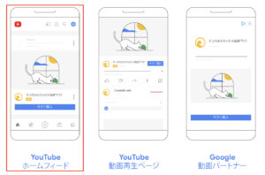 また、広告フォーマットは長い見出しや説明文も追加されたレスポンシブフォーマットになっており、YouTubeの動画の再生前や再生中に表示されるインストリーム広告やYouTube検索ページやYouTube ホームフィードに表示されるディスカバリー広告が1つの広告で配信が行えるようになります。